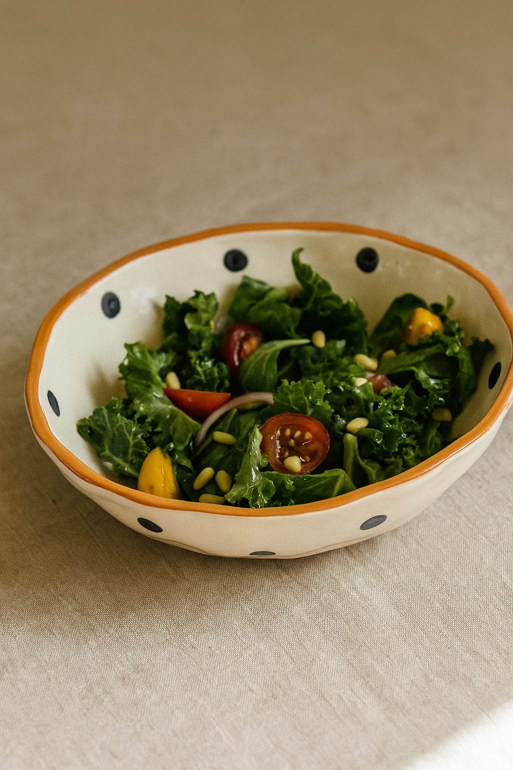 Elevate your dining experience with this expertly crafted Polka Dot Bowl. Featuring a timeless polka dot design, it combines aesthetic appeal with practical functionality. Perfect for both everyday meals and special occasions, this bowl adds a touch of classic charm to your table setting.